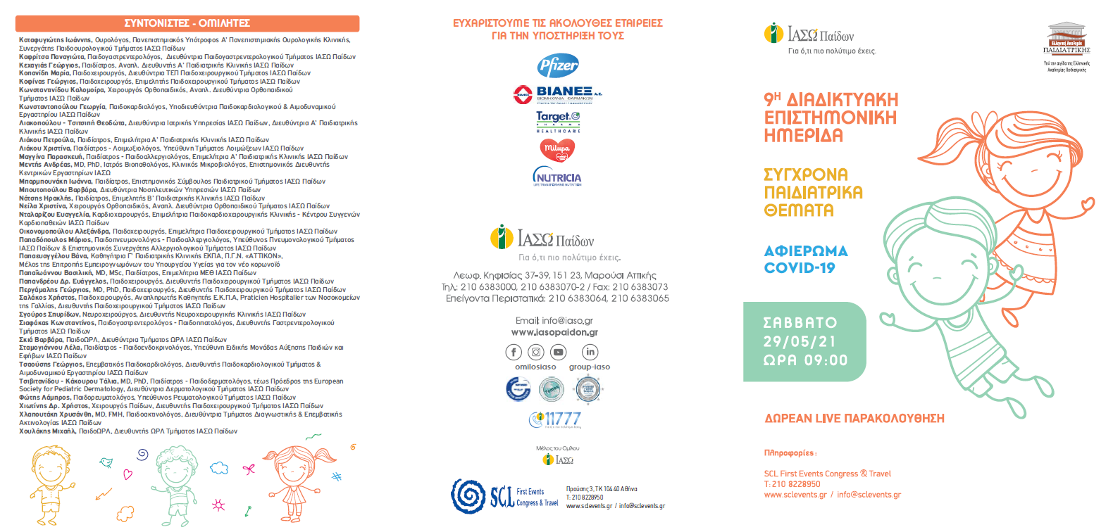 Η 9η Διαδικτυακή Επιστημονική Ημερίδα του ΙΑΣΩ Παίδων, με θέμα «Σύγχρονα Παιδιατρικά Θέματα», θα πραγματοποιηθεί το Σάββατο 29 Μαΐου 2021, στις 09:00.