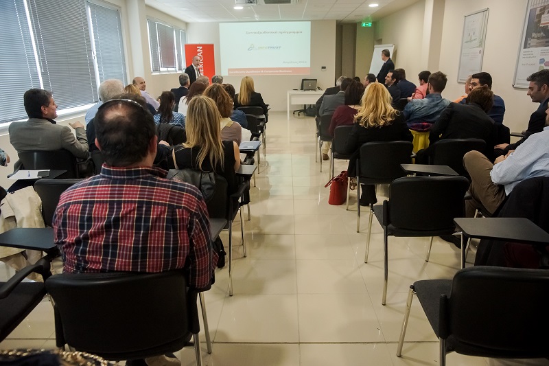 Η ημερίδα άνοιξε με την παρουσίαση του Ομαδικού πελατών INFOTRUST, του μοναδικού προϊόντος που δημιουργήθηκε σε συνεργασία με την INTERAMERICAN και διατίθεται στην αγορά αποκλειστικά από το δίκτυο της INFOTRUST s.a. Ακολούθησε παρουσίαση προϊόντων ζωής και υγείας και έκλεισε με την παρουσίαση πολύ ενδιαφερόντων στοιχείων της αγοράς υγείας σήμερα, ιδιαίτερα χρήσιμων εργαλείων πωλήσεων για τους ασφαλιστές που δραστηριοποιούνται στον κλάδο.