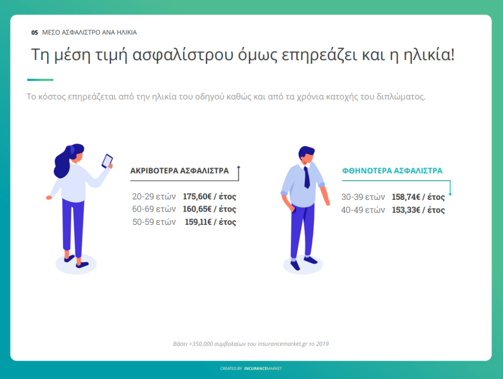 To μέσο ασφάλιστρο στο αυτοκίνητο ανήλθε σε 175,91 ευρώ και το μέσο ασφάλιστρο στη μηχανή στα 101,78 ευρώ. Όπως επισημαίνει η εταιρεία τα ασφάλιστρα από το 2016 μέχρι το 2018 είχαν πτωτική τάση λόγω έντονου ανταγωνισμού μεταξύ των ασφαλιστικών εταιρειών στην ασφάλιση των ανασφάλιστων έως οχημάτων ενώ τον τελευταίο χρόνο έχουν παραμείνει αρκετά σταθερά. Μία μικρή άνοδος του μέσου ετήσιου ασφαλίστρου οφείλεται κατά κύριο λόγο στην μείωση των εκπτώσεων ετήσιας διάρκειας.