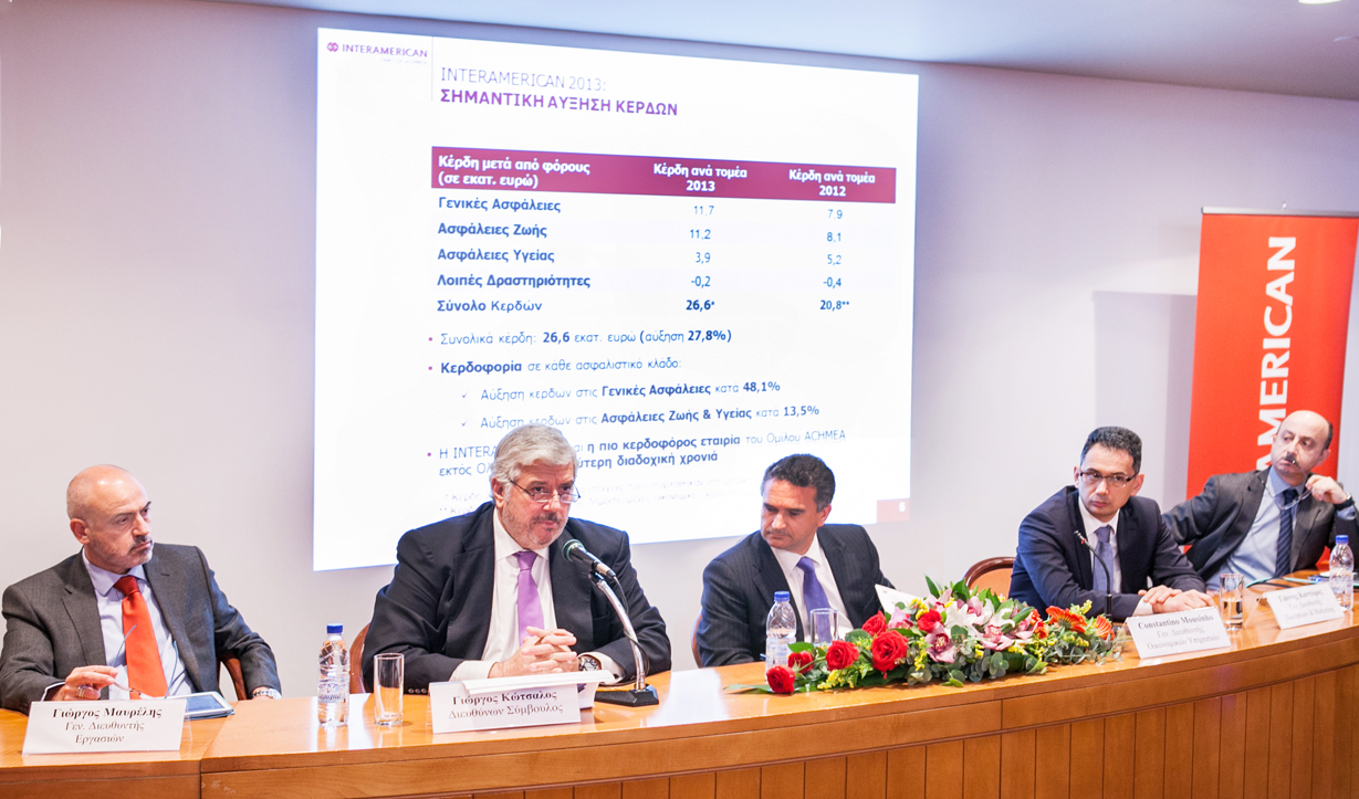Ηγετικό χαρακτήρα στην ασφαλιστική αγορά της επόμενης ημέρας προδίδουν τα οικονομικά αποτελέσματα που παρουσίασε η INTERAMERICAN για το 2013. Η εταιρεία κατέγραψε κέρδη μετά από φόρους 26,6 εκατ. ευρώ, αυξημένα κατά 27,8% έναντι του 2012 (20,8 εκατ.), ενώ αυξημένα είναι και τα επαναλαμβανόμενα κέρδη της. Η παραγωγή συγκρατήθηκε σε υψηλό επίπεδο, φθάνοντας στα 393,9 εκατ. σε συνολικά μεικτά εγγεγραμμένα ασφάλιστρα, μειωμένα λιγότερο έναντι του μέσου όρου της ασφαλιστικής αγοράς (8,1% έναντι 9,3%). Αξιοσημείωτη είναι η περαιτέρω βελτίωση του υψηλού δείκτη φερεγγυότητας, που υπολογίζεται πάνω από 300%.