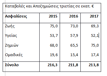 Είναι αξιοσημείωτο, ως λύση-απάντηση στις φθίνουσες συντάξεις της κοινωνικής ασφάλισης, ότι η εταιρεία πλήρωσε πέρυσι σε συντάξεις 34,5 εκατ. σε 6.462 δικαιούχους. Στην ασφάλιση υγείας, τομέα προτεραιότητας στην εταιρική στρατηγική, οι αποζημιώσεις έφθασαν στα 52,1 εκατ. για υπηρεσίες πρωτοβάθμιας φροντίδας, χειρουργικές επεμβάσεις, νοσηλείες και επιδόματα σε σύνολο 208.378 περιπτώσεων.