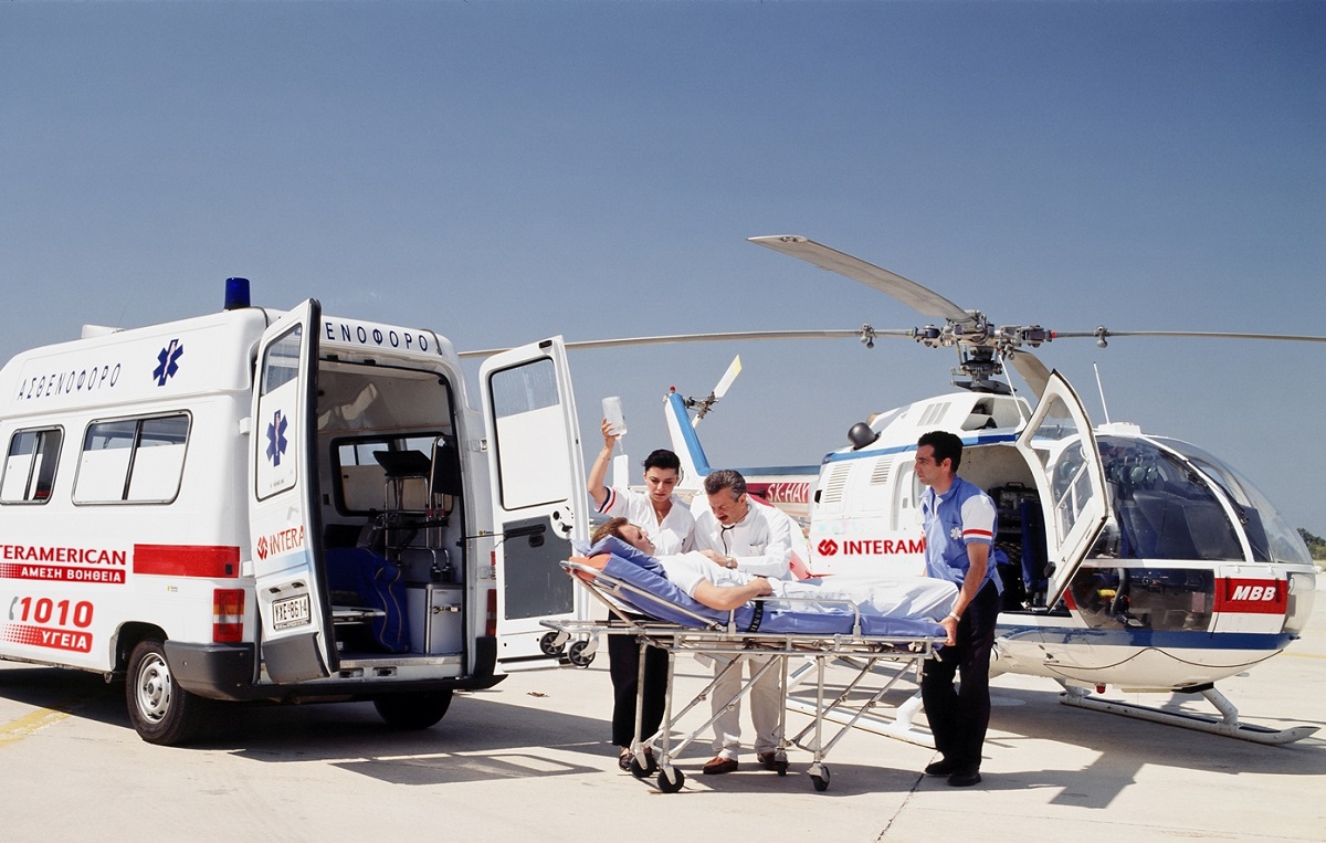 Συγκεκριμένα, η διακομιδή παρέχεται με χρήση εναέριων μέσων που διαθέτει η εταιρεία (υγειονομικό αεροπλάνο ή ελικόπτερο), μετά από γνωμάτευση για το επείγον του περιστατικού και μόνο με την ενεργοποίηση των διαδικασιών μέσα από το δημόσιο σύστημα υγείας, συμπληρωματικά ως προς αυτό, εφ’ όσον για οποιονδήποτε λόγο δεν μπορεί να επιληφθεί άμεσα ο μηχανισμός του. Η INTERAMERICAN Βοήθειας παρέχει σε κάθε κάτοικο, μέσω του Συντονιστικού της Κέντρου Άμεσης Βοήθειας στην Ελλάδα και σε 24ωρη βάση, ιατρικές συμβουλές και κατευθύνσεις, σχετικά με κάθε πρόβλημα υγείας που μπορεί να οδηγήσει ή όχι σε υγειονομική μεταφορά, καθώς επίσης και πληροφορίες υγειονομικής φύσεως, σχετικά με του όρους και προϋποθέσεις υγιεινής που απαιτείται να πληρούνται από τους υγειονομικούς κανονισμούς της χώρας μας.