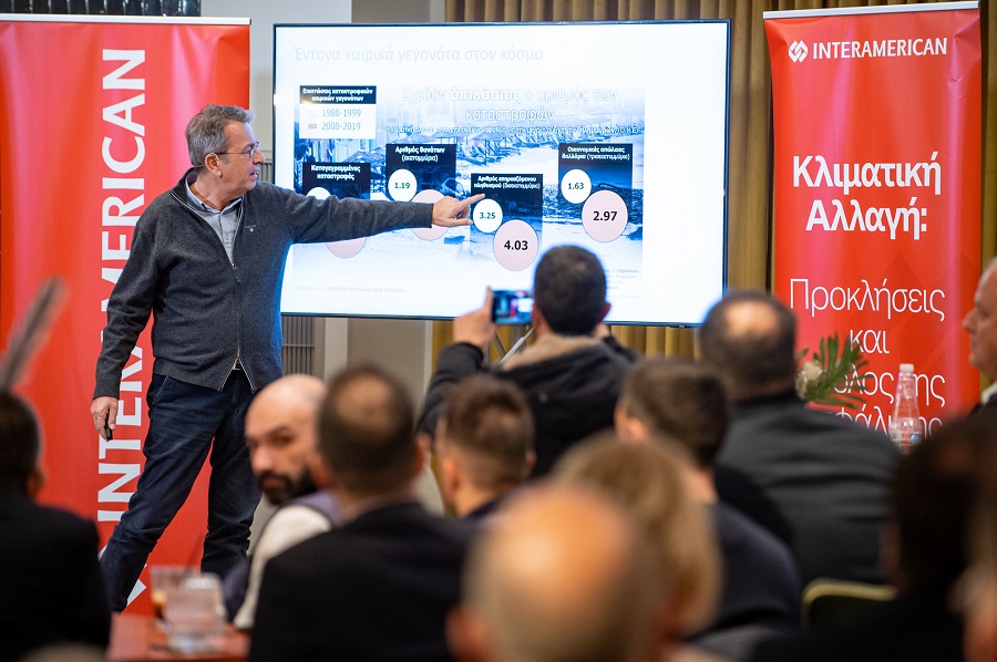 Ανοίγοντας την εκδήλωση, ο Διευθύνων Σύμβουλος της Interamerican Γιάννης Καντώρος, αναφέρθηκε στα νέα δεδομένα που δημιουργούνται από τα εντεινόμενα φαινόμενα της κλιματικής αλλαγής και στο νέο ρόλο που καλείται να διαδραματίσει ο ασφαλιστικός κλάδος. Αναφέρθηκε συνοπτικά στη στρατηγική επιλογή της Interamerican να πρωταγωνιστήσει στην ενημέρωση, ευαισθητοποίηση, προετοιμασία και υποστήριξη της κοινωνίας στον τρόπο αντιμετώπισης των έντονων καιρικών φαινομένων, αξιοποιώντας σύγχρονες τεχνολογίες, συνεργασίες, τις υποδομές και τις ασφαλιστικές λύσεις που διαθέτει ο όμιλος.