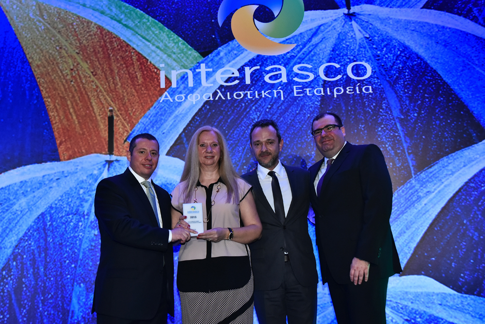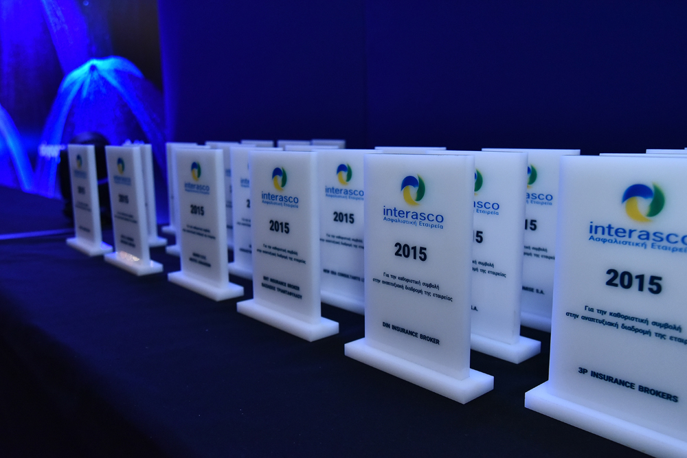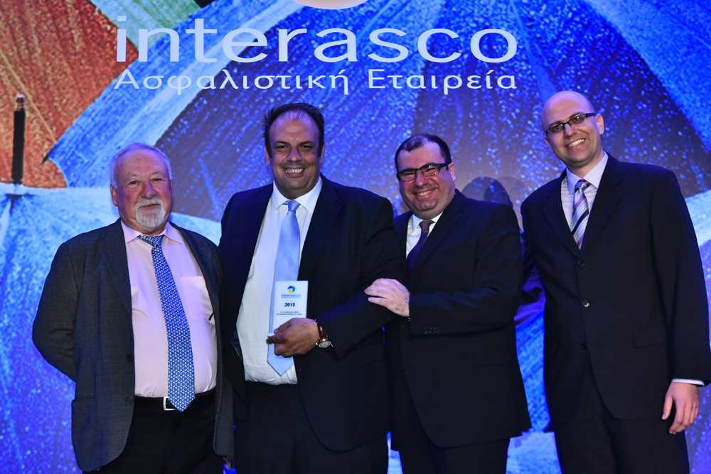 Κορυφαία στιγμή της εκδήλωσης, ήταν η βράβευση από την Εταιρεία, των συνεργατών που ξεχώρισαν με τις επιδόσεις τους για τη χρονιά 2015, καθώς και εκείνων που συνέδεσαν την επαγγελματική τους πορεία με την ταυτότητα της Interasco, συνεργαζόμενοι μαζί της για δεκαπέντε και πλέον χρόνια.