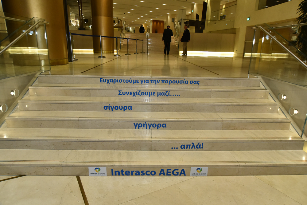 Χαιρετισμό στην εκδήλωση απηύθυναν η κ. Μ. Αντωνάκη, ο κ. Κ. Κοτσιλίνης, Πρόεδρος Διοικητικού Συμβουλίου Ιnterasco Α.Ε.Γ.Α. και ο κ. Θ. Ζαχαρόπουλος, Διευθυντής Πωλήσεων & Marketing.