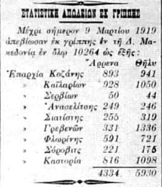 Επίσης διευκρινίζω ότι η αναφερόμενη αιτία θανάτων εκ «Γρίπης» ήταν Ασιατική, λεγόμενη όμως «Ισπανική» και εκδηλώθηκε τον Χειμώνα του 1918 προς το 1919, μόλις 2-3 μήνες μετά την λήξη του «Μεγάλου Πολέμου» (Α΄ Παγκόσμιος Πόλεμος) την 11ην-11-1918 και μεταφορά του θανατηφόρου ιού από τα επιστρέφοντα στους τόπους τους στρατεύματα, που ήδη ήταν «θερισμένα» από πολλούς «ιούς».