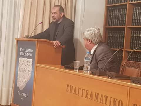 Την εκδήλωση χαιρέτισαν ο πρόεδρος του ΕΕΑ, Γ. Χατζηθεοδοσίου, καθώς και οι Δήμαρχοι Νίκαιας, Γ. Ιωακειμίδης και Περάματος και Γ. Λαγουδάκης, ο περιφερειακός σύμβουλος Γ. Μοίρας, ο πρόεδρος της ΠΕΦΑ Δ. Τσαμόπουλος και ο πρόεδρος του ΠΣΣΑΣ Δ. Γαβαλάκης. Παρευρέθηκαν επίσης άνθρωποι που υπηρέτησαν το Επιμελητήριο όπως οι κ.κ. Σ. Φουστανελάς, Γ. Χαμάκος, Κ. Αδαμόπουλος, Α. Μακρυγιάννης, Μ. Τυρής και ο απερχόμενος πρόεδρος Γ. Μπενέτος .