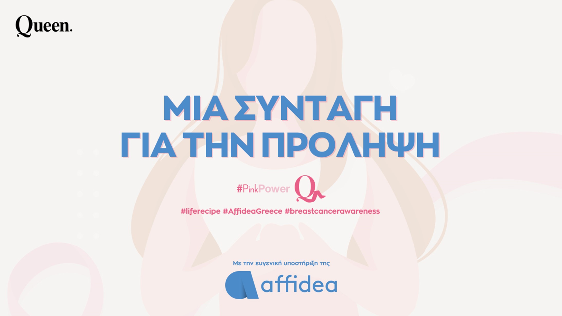 Η πρωτοβουλία είναι μία παραγωγή του queen.gr με την ευγενική υποστήριξη του Ομίλου διαγνωστικών κέντρων Affidea, που στοχεύει να υπενθυμίσει ότι η αυτοεξέταση – ψηλάφηση του μαστού είναι απαραίτητη σε μηνιαία βάση, συμπληρώνοντας το τρίπτυχο της σωστής πρόληψης μαζί με την μαστογραφία και την κλινική εξέταση. Αξίζει να σημειωθεί ότι οι περισσότεροι καρκίνοι του μαστού ψηλαφίζονται για πρώτη φορά από την ίδια τη γυναίκα και όχι από τον ιατρό της.