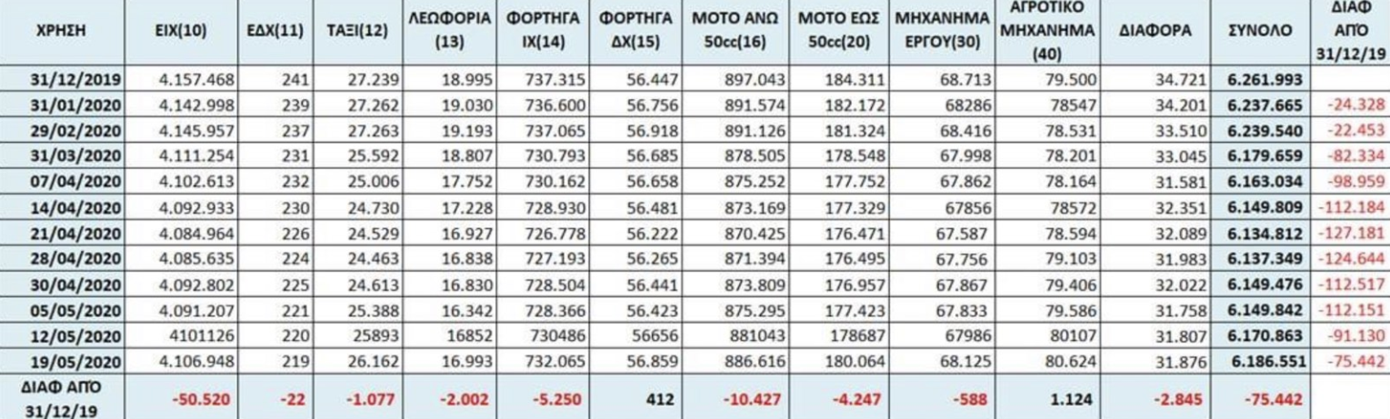 Παρά τη θετική κίνηση που καταγράφεται συνολικά από τις 31/12/2019 ο Κλάδος τον Μάιο καταγράφει απώλειες 75.442 οχημάτων.