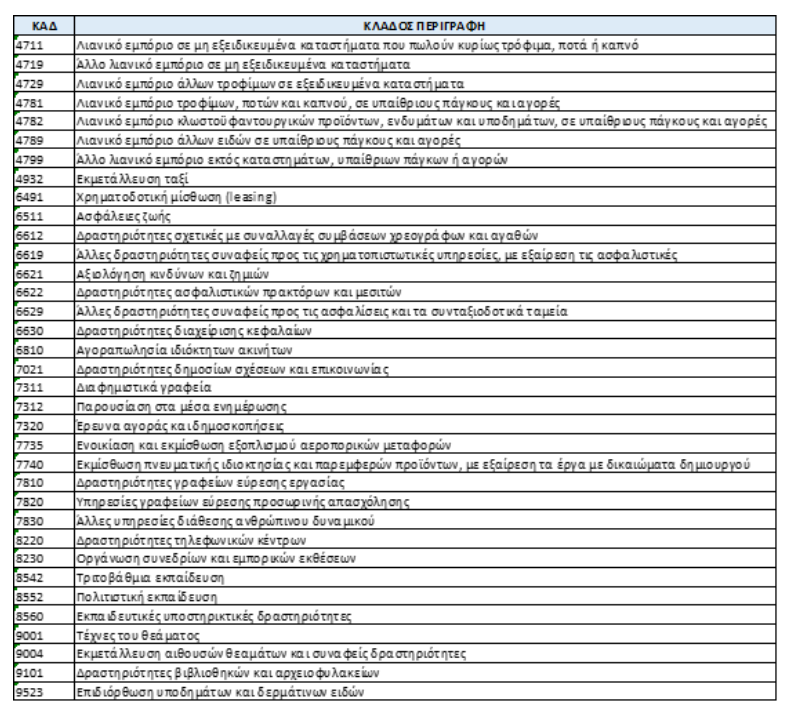 Σύμφωνα με την ΚΥΑ, που φέρει τις υπογραφές του υπουργού Ανάπτυξης, Κ. Σκρέκα και του Υφυπουργού Εθνικής Οικονομίας και Οικονομικών, Χ. Θεοχάρη, επεκτείνεται η υποχρέωση αποδοχής πληρωμής με κάρτα (χρεωστικές ή πιστωτικές) σε επιπλέον 35 (ΚΑΔ) κλάδους της ελληνικής οικονομίας.