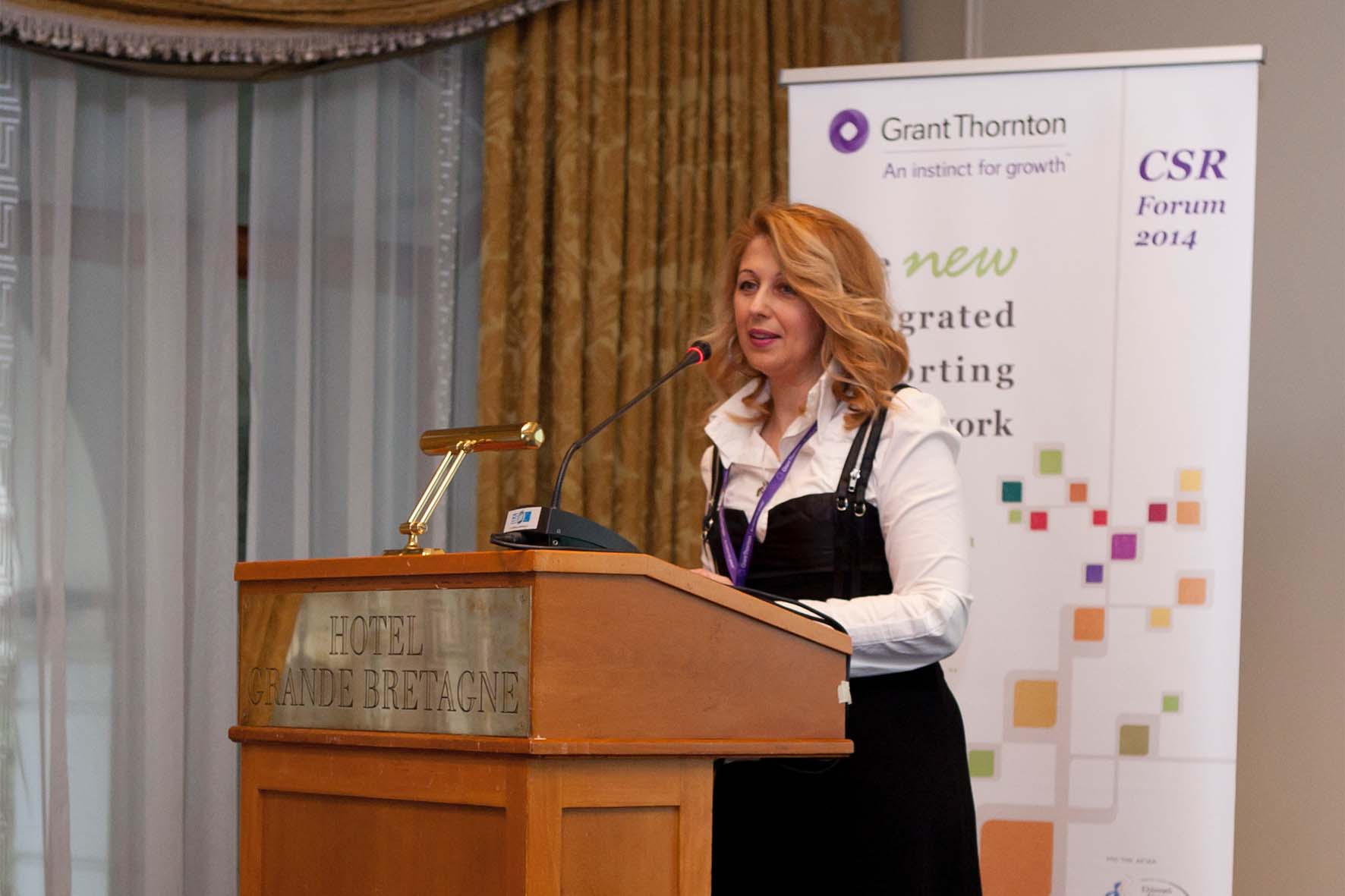 Στη συνέχεια, η κα Jane Stevensen, εκπρόσωπος της Grant Thornton UK, μίλησε για την προστιθέμενη αξία που αναγνωρίζουν οι εταιρείες στην Ευρώπη στην ανάπτυξη ενός Απολογισμού ΕΚΕ ή Ενιαίου Απολογισμού δίνοντας έμφαση στο γεγονός πως ο Απολογισμός αποτελεί την καλύτερη πρακτική διαφάνειας για μια επιχείρηση.