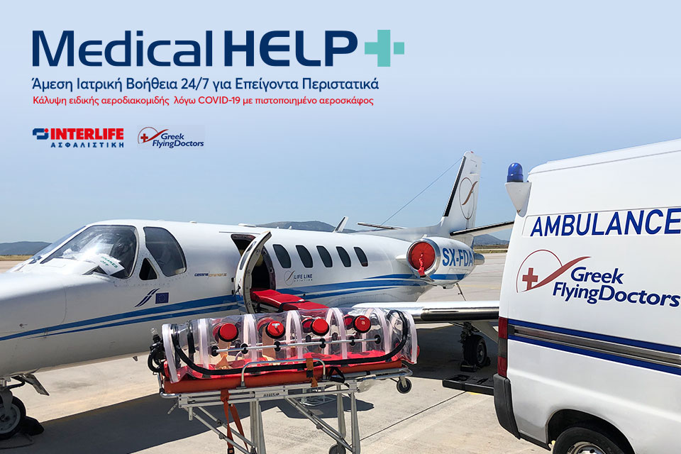 Αξίζει να σημειωθεί ότι το Πρόγραμμα MEDICAL Help παρέχει την κάλυψη αεροδιακομιδής λόγω COVID-19 με ειδικό πιστοποιημένο αεροσκάφος.