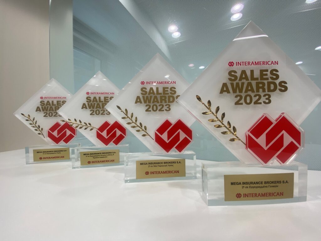Η Mega Brokers απέσπασε 4 βραβεία στην ετήσια τελετή βράβευσης της Interamerican Ασφαλιστικής, που πραγματοποιήθηκε την Δευτέρα 8 Ιουλίου. Οι διακρίσεις αυτές αποτελούν σημαντική επιτυχία για την εταιρεία, με κορυφαίες θέσεις στις κατηγορίες: