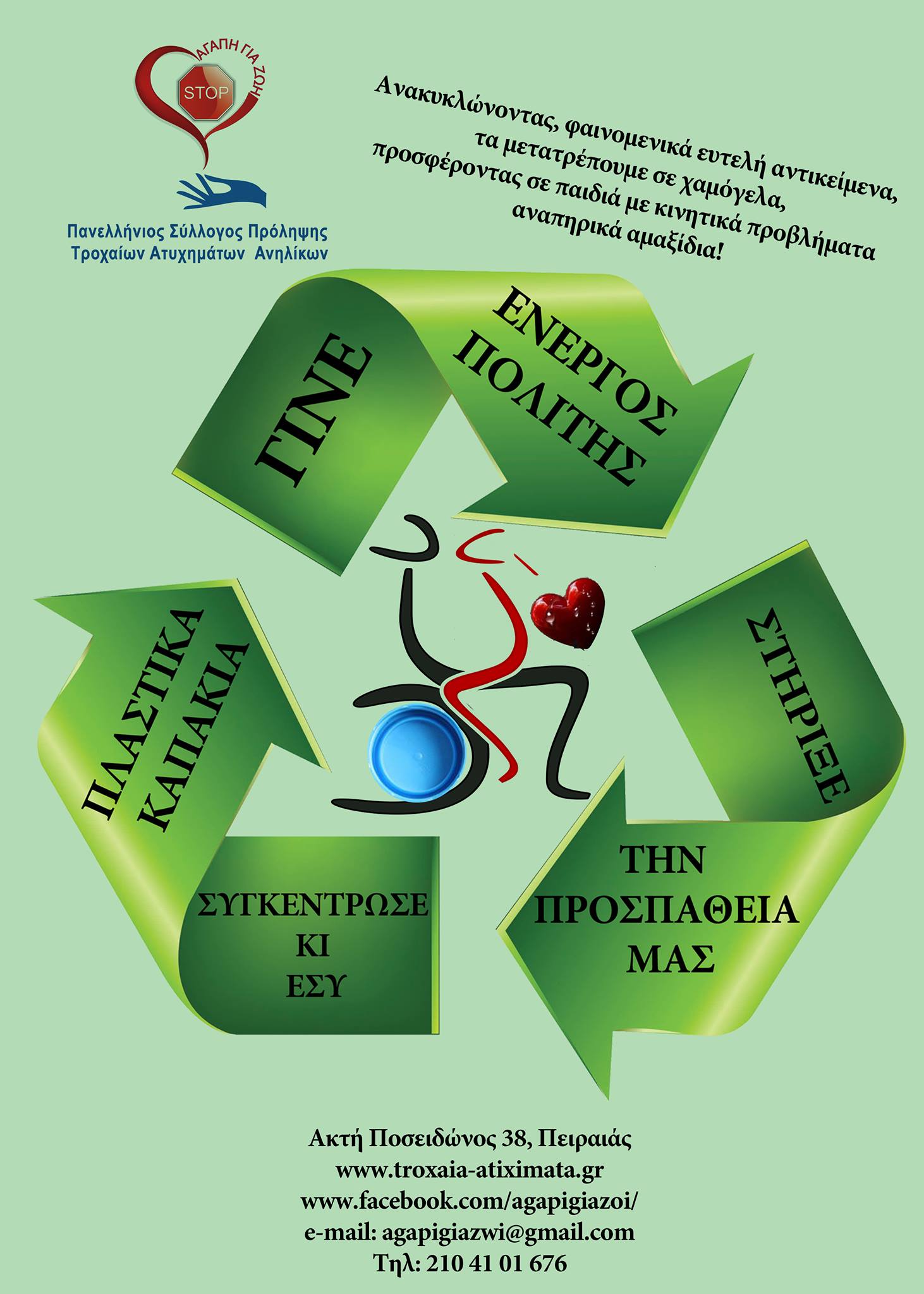 Οι Συνεργάτες και το Διοικητικό προσωπικό της MEGA BROKERS τα τελευταία χρόνια συμμετέχουν ενεργά, στα πλαίσια των δράσεων εταιρικής κοινωνικής ευθύνης, στη συγκέντρωση πλαστικών καπακιών τα οποία προσφέρονται στο Σύλλογο Πρόληψης Τροχαίων Ατυχημάτων «Αγάπη για Ζωή». Είμαστε ιδιαίτερα ευγνώμονες που με τη συμβολή της MEGA BROKERS, o μικρός Κωνσταντίνος παρέλαβε την Παρασκευή 21 Ιουλίου 2017 το ειδικό κάθισμα το οποίο θα διευκολύνει την καθημερινότητά του και θα του επιτρέψει να ζήσει με αξιοπρέπεια σε ένα πιο ανθρώπινο περιβάλλον. Ενέργειες σαν κι αυτή αποτελούν παράδειγμα ελπιδοφόρο και φανερώνουν πως ο σεβασμός στον άνθρωπο και στο περιβάλλον είναι προτεραιότητα της εταιρείας μας. Αισθανόμαστε την ηθική υποχρέωση να ευχαριστήσουμε θερμά όλους τους Συνεργάτες και το Διοικητικό προσωπικό μας που συμμετέχει με τη συνεχή προσφορά τους. Και συνεχίζουμε ακόμη πιο δυναμικά!