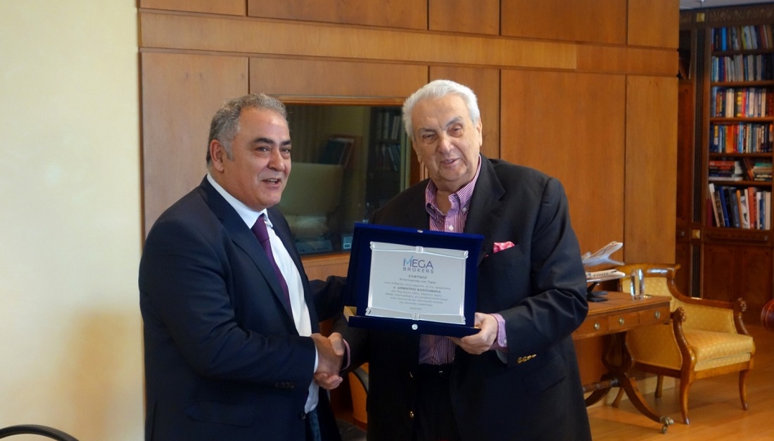 Ο Πρόεδρος & Διευθύνων Σύμβουλος της MEGA BROKERS κ. Γιάννης Χατζηθεοδοσίου, παρουσία στελεχών της Εταιρείας του και εκπροσώπων του κλαδικού Τύπου, παρέδωσε την τιμητική πλακέτα στον κ. Κοντομηνά, αναγνωρίζοντας έμπρακτα την καθοριστική συμβολή του στη διαμόρφωση της ελληνικής ασφαλιστικής αγοράς, την οραματική του παρουσία που εμπνέει έως σήμερα και την καθοριστική συνδρομή του στην ποιοτική και ποσοτική άνοδο του κλάδου.