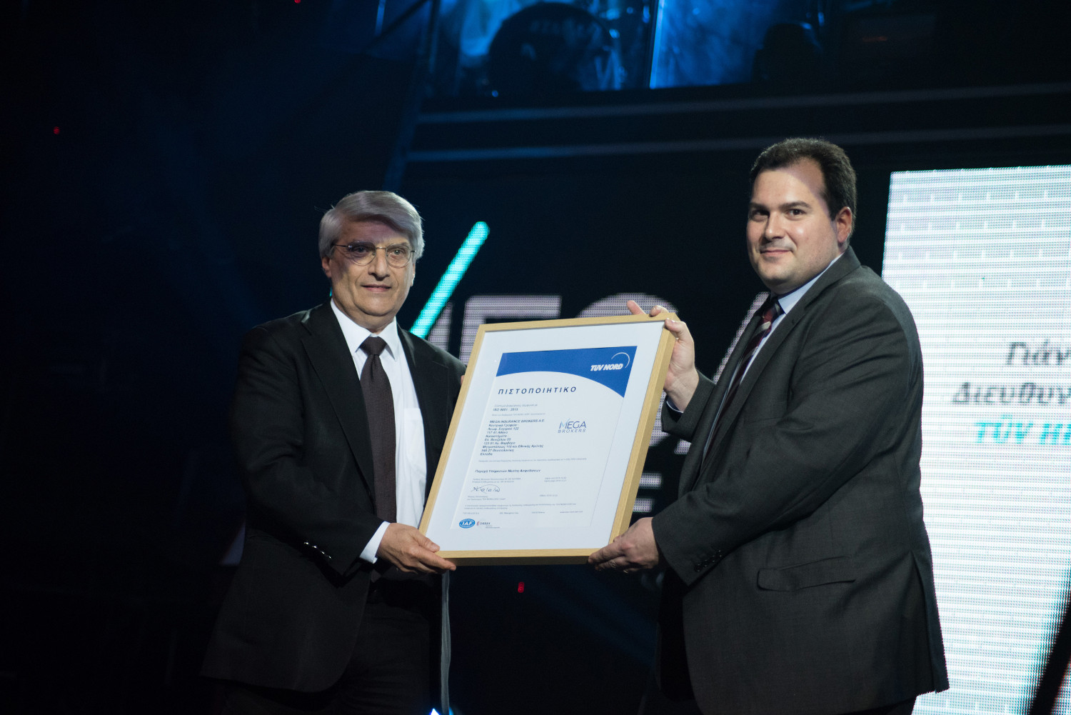 Η βραδιά ξεκίνησε με την προβολή ενός video παρουσίασης των σημαντικών σημείων και δράσεων της εταιρείας με κεντρικό μήνυμα «Γι’ αυτό είμαστε η Μεγαλύτερη Μεσιτική Εταιρεία Ασφαλειών στην Ελλάδα» ενώ πρώτος στο βήμα ανέβηκε ο Αλέξανδρος Σαρρηγεωργίου, Αντιπρόεδρος της Ένωσης Ασφαλιστικών Εταιριών Ελλάδος, που στις δηλώσεις του αναφέρθηκε στην αξία της Ιδιωτικής Ασφάλισης. Σημαντική στιγμή της βραδιάς ήταν η απονομή παράδοσης της πιστοποίησης ISO 9001:2015 από τον διεθνή φορέα πιστοποίησης TÜV NORD και τον Γιάννη Οικονομίδη, Διευθυντή Πιστοποιήσεων TÜV Hellas στον εσωτερικό ελεγκτή της MEGA BROKERS, Λευτέρη Παπασταύρου, αποδεικνύοντας στην πράξη πως η εταιρεία έχει περάσει στη νέα εποχή με απόλυτη δέσμευση απέναντι στους συνεργάτες της, στις ασφαλιστικές εταιρείες και στον τελικό καταναλωτή για τη διαρκή ποιοτική αναβάθμιση των υπηρεσιών της.