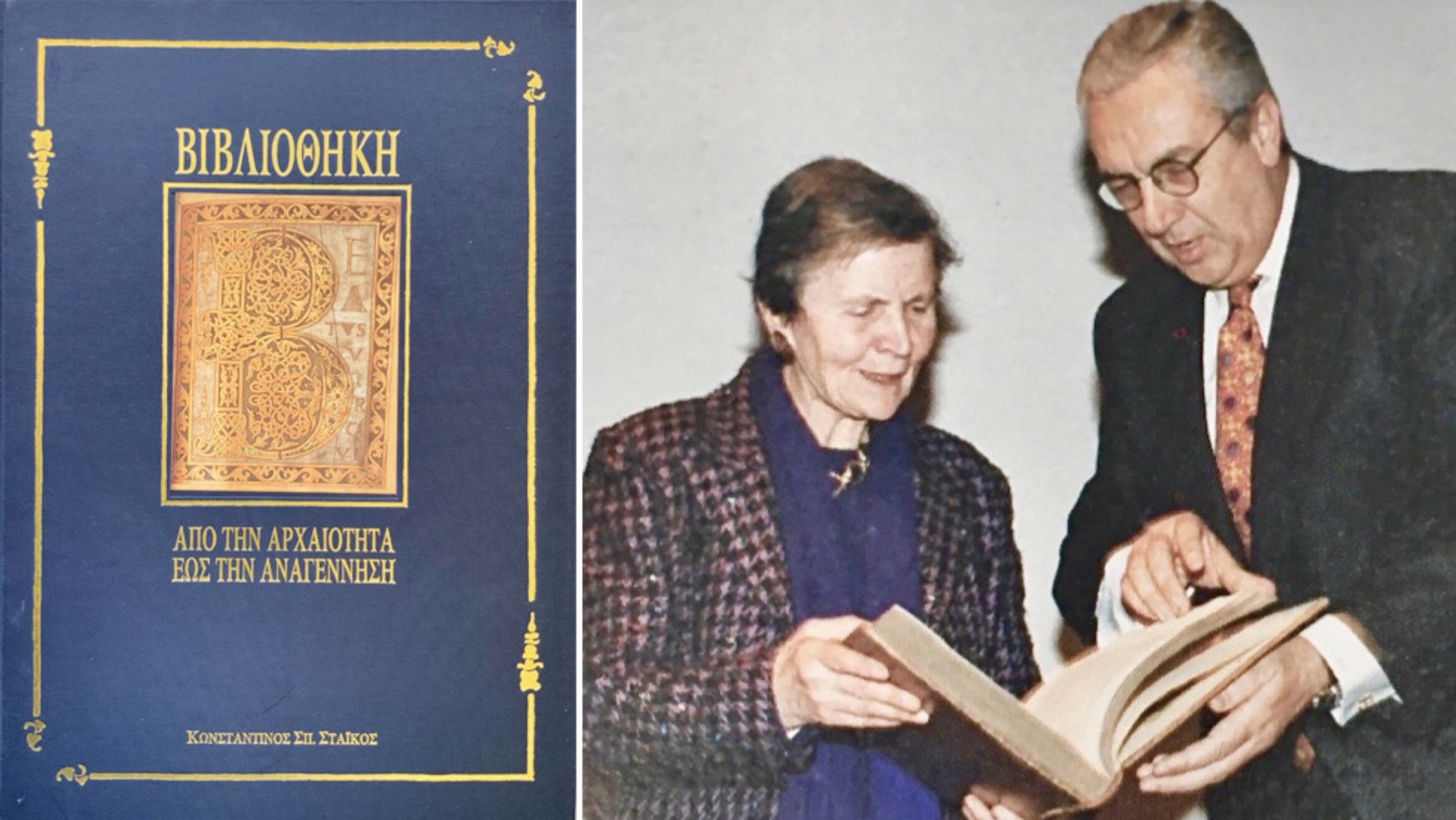 Το 1996 είχε εκδοθεί σπό τον Κώστα Στάικο, με την αποκλειστική χορηγία της Interamerican και του ηγέτη της Δημήτρη Κοντομηνά, η μνημειώδης “ΒΙΒΛΙΟΘΗΚΗ – από την Αρχαιότητα έως την Αναγέννηση, 3000 π.Χ.-1600 μ.Χ.”, με προλεγόμενα της Ελένης Γλύκατζη-Αρβελέρ. Η επιφανής Ελληνίδα της διανόησης σημείωνε τότε, χαρακτηριστικά για την αξία του βιβλίου, στα προλεγόμενα: