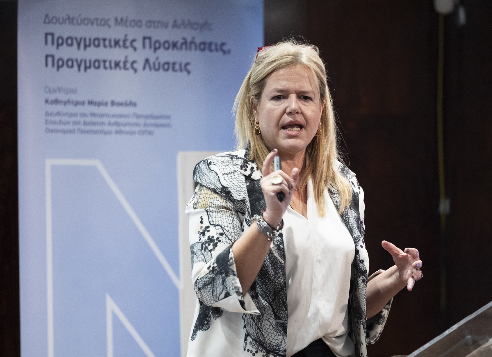 Με ιδιαίτερη επιτυχία πραγματοποιήθηκε ομιλία της Καθηγήτριας κ. Μαρίας Βακόλα, Διευθύντριας του Μεταπτυχιακού Προγράμματος στη Διοίκηση Ανθρώπινου Δυναμικού του Οικονομικού Πανεπιστημίου Αθηνών, με θέμα «Δουλεύοντας μέσα στην Αλλαγή: Πραγματικές Προκλήσεις, Πραγματικές Λύσεις», για στελέχη και συνεργάτες της ΜΙΝΕΤΤΑ Ασφαλιστικής, την Πέμπτη 13 Νοεμβρίου, στο Ίδρυμα Β. & Μ. Θεοχαράκη.