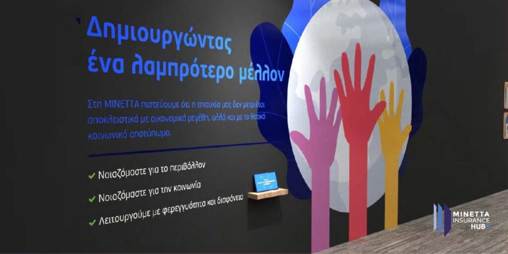 Το ΜΙΝΕΤΤΑ Insurance HUB αξιοποιώντας τη σύγχρονη τεχνολογία Virtual Reality, υποστηρίζει την περιήγηση και με τη χρήση γυαλιών εικονικής πραγματικότητας η οποία αποτελεί μια νέα εμπειρία. Επισκεφτείτε το από ηλεκτρονικό υπολογιστή, κινητό τηλέφωνο ή tablet, ακολουθώντας τον παρακάτω σύνδεσμο https://www.minetta.gr/minetta-insurance-hub/.