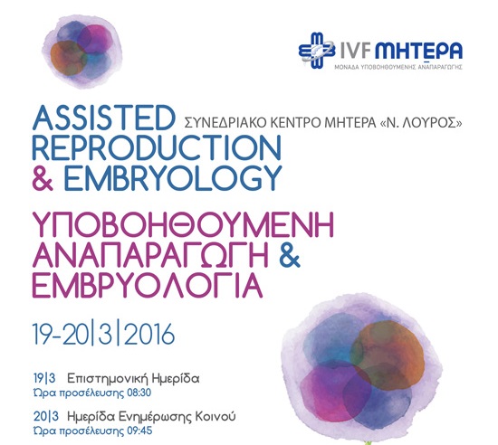 Μια σημαντική παροχή θα λάβουν όλα τα ζευγάρια που θα παραβρεθούν στο ΜΗΤΕΡΑ (αίθουσα «Ν. Λούρος») την Κυριακή 20 Μαρτίου 2016, από τις 10 το πρωί έως τις 14.00 το μεσημέρι, στο πλαίσιο της 5ης επιστημονικής διημερίδας με θέμα «Υποβοηθούμενη Αναπαραγωγή & εμβρυολογία» που διοργανώνει η Μονάδα Υποβοηθούμενης Αναπαραγωγής (IVF) ΜΗΤΕΡΑ στις 19 & 20 Μαρτίου 2016.