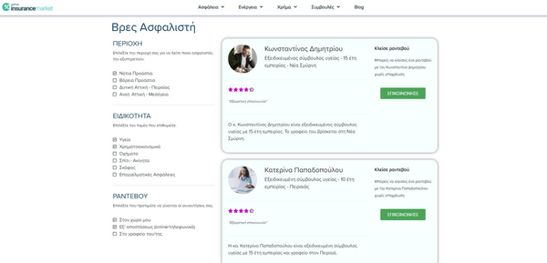 H νέα υπηρεσία ονομάζεται «Βρες τον ασφαλιστή σου» και μέσω αυτής παρέχεται η δυνατότητα στους επισκέπτες της πλατφόρμας του Insurancemarket.gr να επιλέξουν τον ασφαλιστή που επιθυμούν για να ασφαλιστούν -αρχικά στον κλάδο Υγείας.