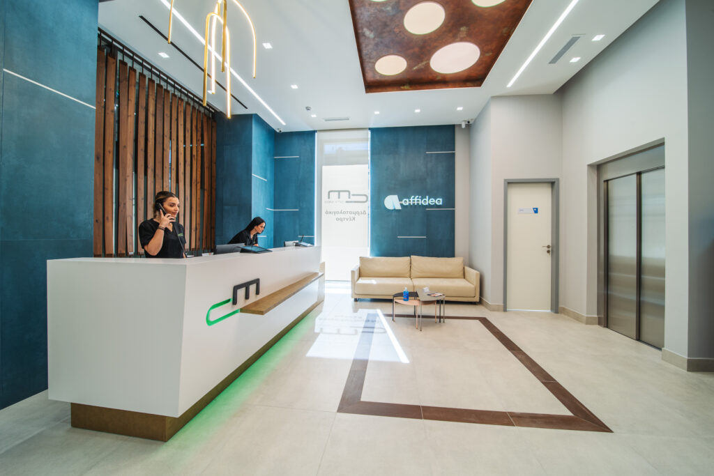 Το κέντρο συνδυάζει τη μοναδική εμπειρία εξυπηρέτησης Affidea και την σύγχρονη ιατρική τεχνολογία με την απαράμιλλη αισθητική του νεοκλασικού διατηρητέου. Η αρμονία και το μοντέρνο design διαμορφώνουν ένα χαλαρωτικό περιβάλλον που μειώνει σημαντικά το άγχος τόσο κατά τη διενέργεια της εξέτασης όσο και κατά τη διάρκεια της αναμονής.