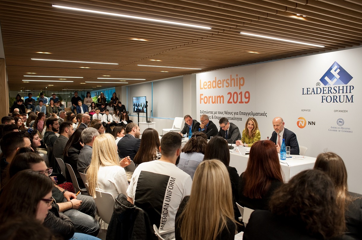 Η Επιτροπή Ηγεσίας του Ελληνο – Αμερικανικού Εμπορικού Επιμελητηρίου και η NN Hellas, διοργάνωσαν το 10ο Leadership Forum 2019 με θέμα «Συζητώντας με τους νέους για Επαγγελματικές Ευκαιρίες και Επιχειρηματικότητα», την Τετάρτη 27 Μαρτίου 2019, στα κεντρικά γραφεία της εταιρίας. Περισσότεροι από 180 νέοι, 17 έως 25 ετών, προερχόμενοι από διάφορα εκπαιδευτικά ιδρύματα δευτεροβάθμιας και τριτοβάθμιας εκπαίδευσης, ενημερώθηκαν από ανώτατα διευθυντικά στελέχη και επιχειρηματίες για τις εξελίξεις στην αγορά εργασίας, τις προκλήσεις του επιχειρείν και τις ευκαιρίες καριέρας.