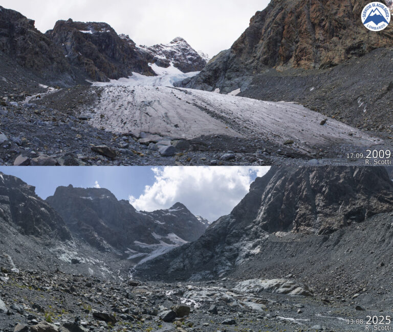 Σύμφωνα με την υπηρεσία της Λομβαρδίας, οι Άλπεις αποτελούν ένα κλιματικό hotspot, καταγράφοντας διπλάσιο από τον παγκόσμιο μέσο όρο αύξησης της θερμοκρασίας από την προβιομηχανική εποχή, με αποτέλεσμα την απώλεια πάνω από 64% του όγκου των αλπικών παγετώνων.