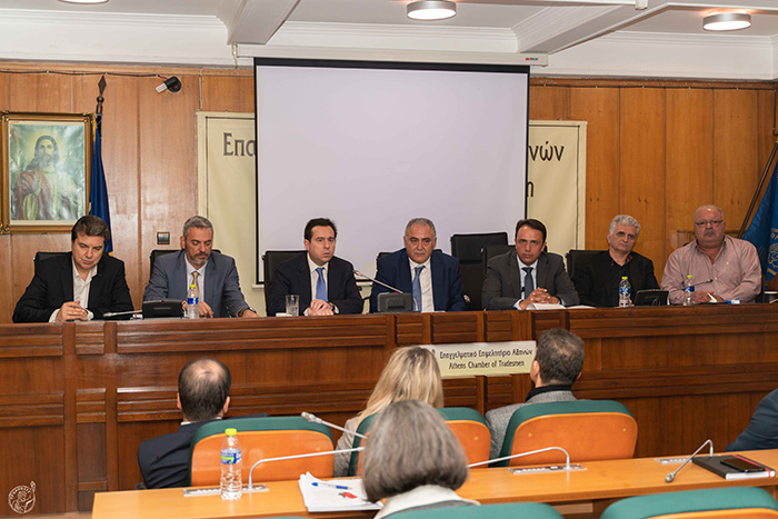 Ο Πρόεδρος του Επαγγελματικού Επιμελητηρίου Αθηνών κ. Γιάννης Χατζηθεοδοσίου, μέλη της Διοικητικής Επιτροπής και του Διοικητικού Συμβουλίου, καθώς και εκπρόσωποι σωματείων που παρίσταντο στη συνεδρίαση, έθεσαν στον κ. Μηταράκη τα ζητήματα των υπέρμετρων επιβαρύνσεων σε επαγγελματίες και μικρομεσαίους επιχειρηματίες από φόρους και εισφορές, του υψηλού μη μισθολογικού κόστους, της γραφειοκρατίας, με αιχμή τον ΕΦΚΑ, της «μαύρης εργασίας», καθώς και μία σειρά από κλαδικά θέματα.