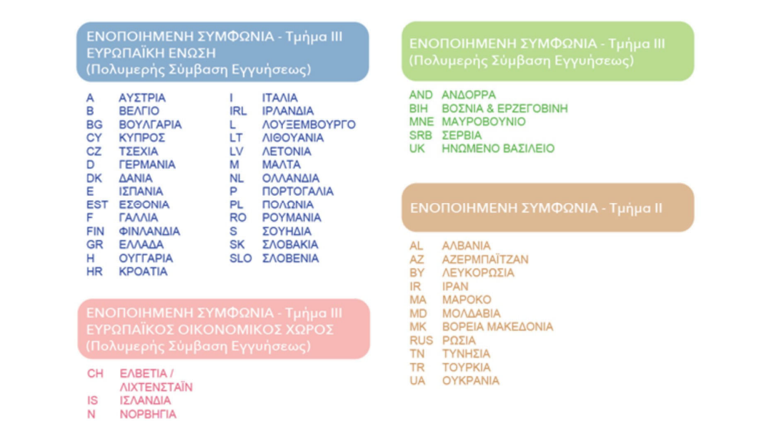 Βάσει ειδικών συμφωνιών μεταξύ των Γραφείων, το ίδιο ισχύει (δεν απαιτείται Πράσινη Κάρτα) και για τις εξής εκτός Ε.Ε. χώρες: Ανδόρρα, Μαυροβούνιο, Ηνωμένο Βασίλειο, Βοσνία Ερζεγοβίνη, Σερβία.