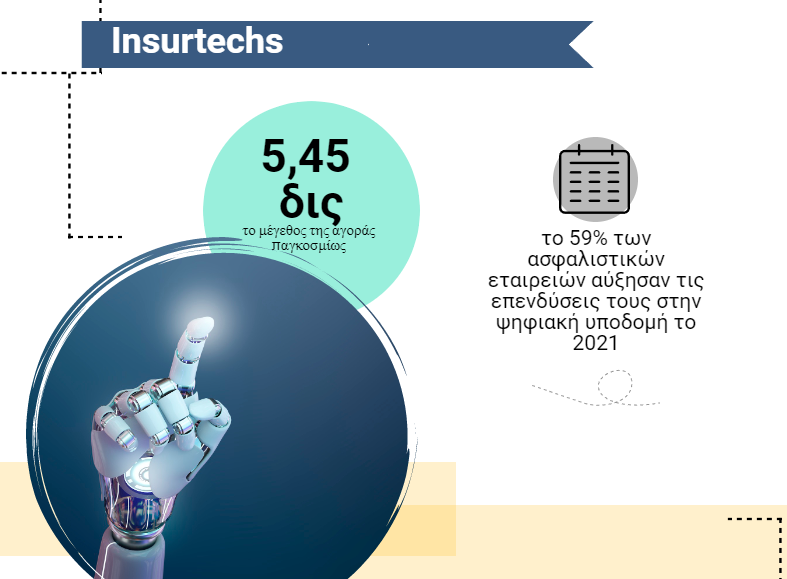 Σύμφωνα με έρευνα της Grand and View Research το 2022 το μέγεθος της παγκόσμιας αγοράς ασφαλιστικών τεχνολογιών φτάνει τα 5,45 δισεκατομμύρια δολάρια ΗΠΑ και υπολογίζεται ότι την επόμενη επταετία η ανάπτυξη στο συγκεκριμένο τομέα θα “τρέξει” με σύνθετο ετήσιο ρυθμό ανάπτυξης (CAGR) 52,7%.