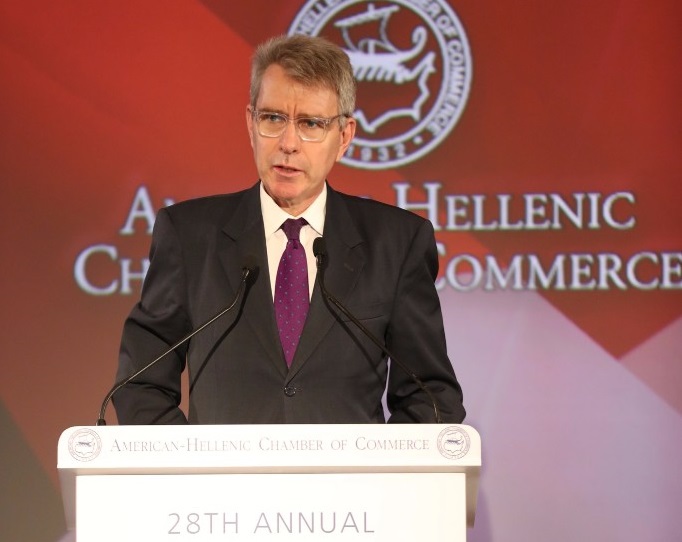 Κατά την ομιλία του στο Δείπνο που παρέθεσε το Ελληνο-αμερικανικό Εμπορικό Επιμελητήριο, ο Αρχηγός της Αξιωματικής Αντιπολίτευσης και Πρόεδρος της Ν.Δ., Κυριάκος Μητσοτάκης, μεταξύ άλλων αναφέρθηκε στο επιχειρείν το οποίο όπως τόνισε ταυτίστηκε με το κράτος και ως εκ τούτου το κράτος λειτούργησε πελατειακά απέναντι όχι μόνο στους πολίτες αλλά και στην επιχειρηματική κοινότητα. Αναφερόμενος στον προϋπολογισμό σημείωσε ότι η κυβερνητική πρόβλεψη είναι υπεραισιόδοξη καθώς για να επαληθευτεί η πρόβλεψη του προϋπολογισμού για ετήσια αύξηση 1,6%, στο τέταρτο τρίμηνο θα πρέπει να καταγραφεί αύξηση του Α.Ε.Π. κατά 3%. Σχετικά με τους πλειστηριασμούς είπε χαρακτηριστικά, «Πρωταρχικό μέλημα της Πολιτείας οφείλει να είναι η αποκάλυψη και η τιμωρία των «στρατηγικών κακοπληρωτών», των πονηρών που εκμεταλλεύονται το πλαίσιο προστασίας του Κράτους για τους αδύναμους. Το οφείλουμε σε όλους τους συνεπείς δανειολήπτες που, παρά τις μεγάλες δυσκολίες, ανταποκρίνονται στις υποχρεώσεις τους.» Αναφερόμενος στη γενιά των 360€, σημείωσε, «Το brain drain σε συνδυασμό με την αρνητική δημογραφική τάση συνιστούν εκρηκτικό μηχανισμό στα θεμέλια της οικονομίας μας. Η Ελλάδα είναι μία αναπτυγμένη χώρα. Δεν μπορεί και δεν πρέπει να μετακινηθεί προς δραστηριότητες που βασίζονται σε φθηνά και ανειδίκευτα εργατικά χέρια. Ο στόχος μας πρέπει να είναι η βελτίωση της ανταγωνιστικότητας της οικονομίας όχι όμως με περαιτέρω μείωση του εργασιακού κόστους, όχι δηλαδή με χαμένες γενιές των 360 ευρώ. Το εκπαιδευτικό σύστημα σε όλες τις βαθμίδες του, οφείλει να παράγει αποφοίτους με δεξιότητες οι οποίοι να ανταποκρίνονται στις σύγχρονες ανάγκες μιας οικονομίας που πρέπει να μετασχηματιστεί γρήγορα. Για το σκοπό αυτό χρειάζεται μια ριζική αναθεώρηση του εκπαιδευτικού μας συστήματος, την οποία έχουμε σχεδιάσει. Δεν είναι χρονικά εφικτό να αναφερθώ σε μεγάλη λεπτομέρεια σήμερα σε αυτό το κεφαλαιώδες ζήτημα. Η δημόσια εκπαίδευση για εμάς δεν είναι απλώς ένα μέσο για την ώθηση της οικονομίας προς δραστηριότητες υψηλής προστιθέμενης αξίας. Η δημόσια εκπαίδευση ήταν και παραμένει στη χώρα μας ο βασικότερος μηχανισμός κοινωνικής κινητικότητας και δημιουργίας ευκαιριών για τους πιο αδύναμους».