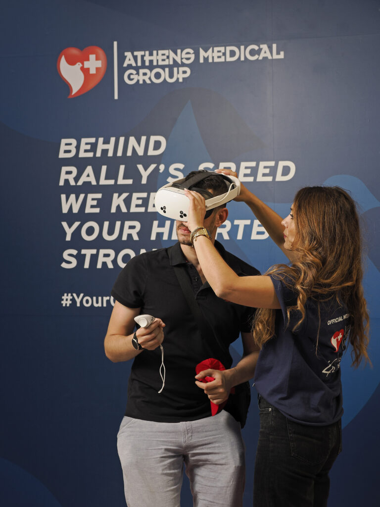 Η παρουσία του Ομίλου Ιατρικού Αθηνών ήταν εξίσου δυναμική και στους παράλληλους χώρους της διοργάνωσης, με δύο εντυπωσιακά εκθεσιακά περίπτερα στο Ζάππειο και στο EKO Service Park της Πανελλήνιας Έκθεσης Λαμίας. Εκεί, οι επισκέπτες είχαν την ευκαιρία να πραγματοποιήσουν το δικό τους “Health Pit Stop”, συμμετέχοντας σε μια μοναδική εμπειρία εικονικής πραγματικότητας (VR), να θαυμάσουν από κοντά τα θρυλικά αυτοκίνητα της κατηγορίας Group B και να ενημερωθούν για τις σωματικές προκλήσεις που αντιμετωπίζουν οι αγωνιζόμενοι κατά τη διάρκεια των αγώνων.