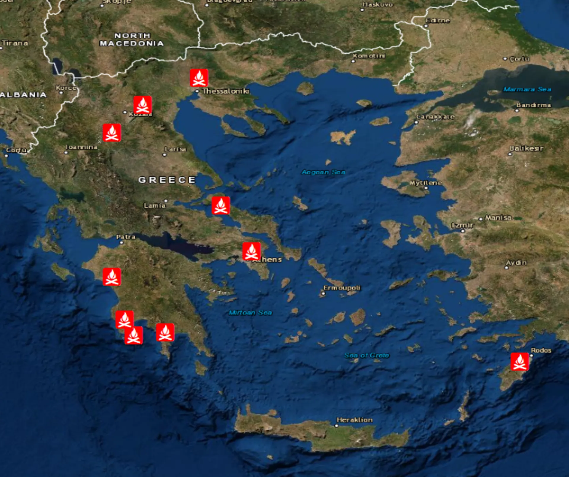 Σύμφωνα με το Εθνικόν Αστεροσκοπείον Αθηνών έως το μεσημέρι της Κυριακής 8 Αυγούστου είχαν καεί περίπου 460.000 στρέμματα στην Εύβοια, 80.000 στρέμματα στην Αττική και 110.000 στρέμματα στη Λακωνία, ανεβάζοντας το σύνολο των καμένων εκτάσεων στα 650.000 στρέμματα τουλάχιστον.