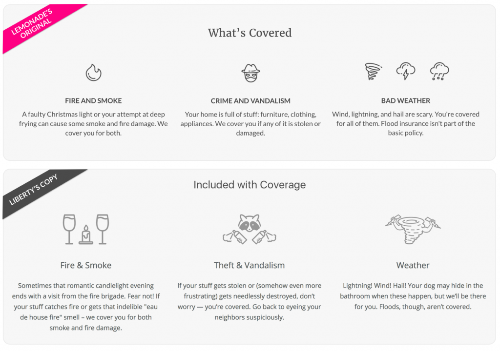 Και η Lemonade συνεχίζει: “Στο τέλος της ημέρας, η αναζήτησή μας για το ‘# 1 Λεμονάδα-Copycat’ έδωσε έναν σαφή νικητή: τη Liberty Mutual. Κέρδισαν τον τίτλο για το “Lulo”, το νέο τους εμπορικό σήμα για την προώθηση ασφαλίσεων σε ενοικιαστές. Ένα εσπεριδοειδές φρούτο για όνομα, ένα λογότυπο που μοιάζει λίγο με το δικό μας , παράφραση του περιεχομένου, αντιγραφή τιμών. Θέλω να πω, είμαστε κολακευμένοι.. αλλά ρίξτε μια ματιά στα παρακάτω λογότυπα . Δεν είναι και λίγο ενοχλητικό;”