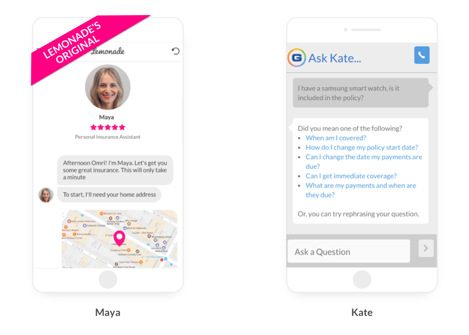 Επίσης, η GEICO λάνσαρε το chatbox Kate μετά από τη δημιουργία του chatbox Jim της Lemonade.