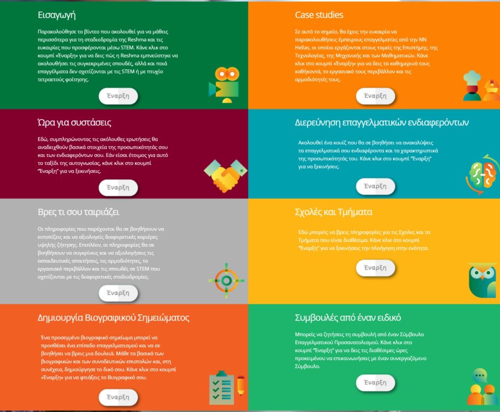 Σε αυτά και άλλα καίρια ερωτήματα έρχεται να απαντήσει η καινοτόμα αυτή πλατφόρμα που αρχικά θα λειτουργήσει σε 50 σχολεία για 1.250 μαθητές. Στρατηγική στόχευση της ΝΝ μέσα από αυτή την ενέργεια είναι με την αξιοποίηση ψηφιακών εργαλείων να συμβάλλει σημαντικά στην καθιέρωση θεσμού και κουλτούρας στο σχολικό επαγγελματικό προσανατολισμό.