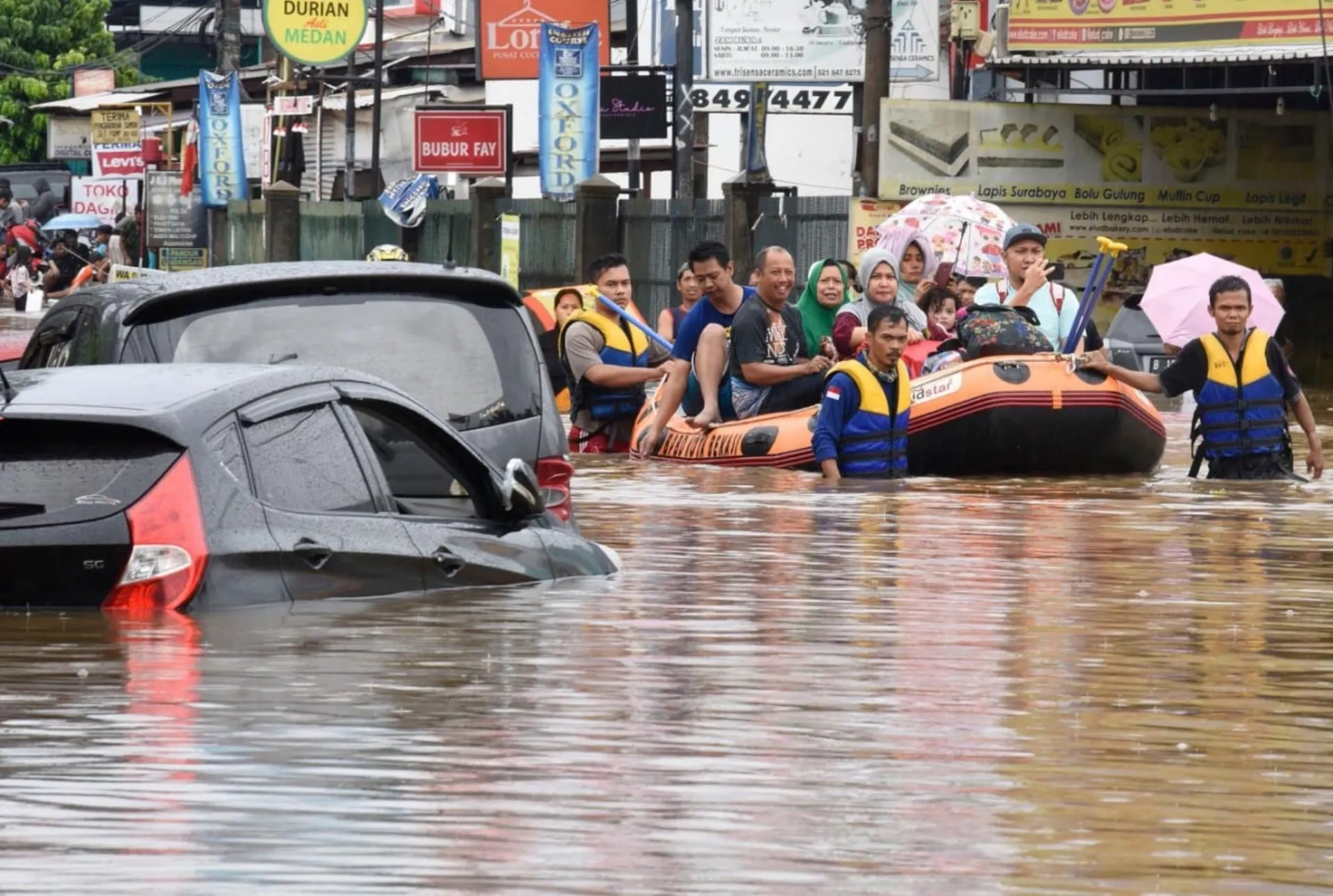 Τουλάχιστον 1.500 άνθρωποι εκτοπίστηκαν από τη σφοδρή βροχόπτωση που ξεκίνησε τη Δευτέρα, ανέφερε σε ανακοίνωσή της αργά την Τρίτη η Εθνική Υπηρεσία Αντιμετώπισης Καταστροφών. Οι εκκενώσεις συνεχίζονται, ενώ στις πληγείσες περιοχές έχουν στηθεί δημόσιες κουζίνες και σκηνές. Ένα μεγάλο εμπορικό κέντρο στο Μπεκάσι, μια από τις πολυπληθέστερες πόλεις της Ινδονησίας, πλημμύρισε. Ένα εργοστάσιο που διευθύνεται από την τοπική μονάδα της τουρκικής Kordsa Teknik Tekstil AS σταμάτησε τη λειτουργία του.