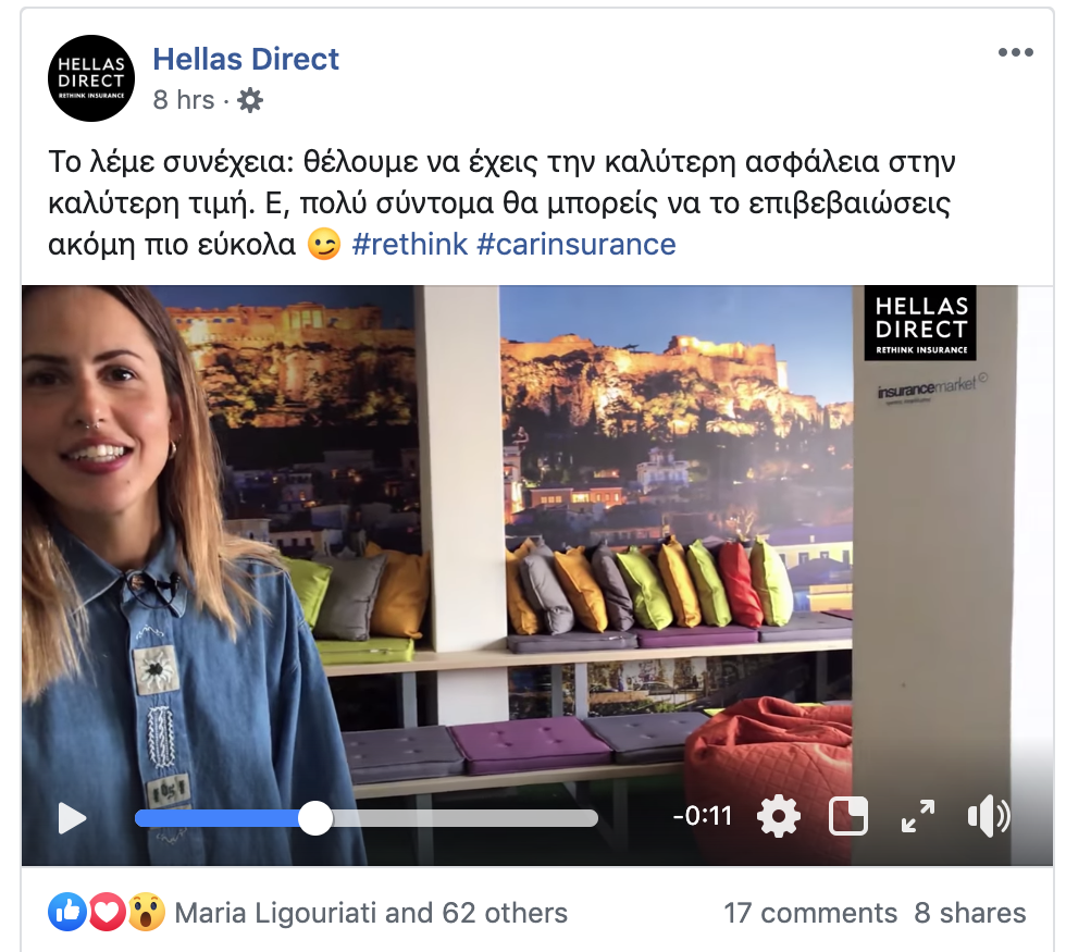 Σύμφωνα με πληροφορίες του ID και από τα teasers που έχουν δημοσιευτεί στο Facebook, και από τις δύο πλευρές, η Direct Online Ασφαλιστική εταιρεία Hellas Direct θα είναι η 24η Ασφαλιστική εταιρεία που συμφώνησε να συμμετέχει στην πλατφόρμα σύγκρισης συμβολαίων & πολυτιμολόγησης της Insurancemarket.gr.