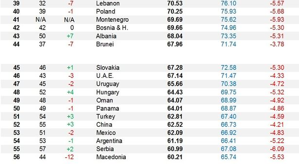 Σε σχέση μάλιστα με το 2017 η χώρα ‘έχει κατέβει 6 θέσεις πιο κάτω ενώ σε σχέση με το 2015 έχει κατέβει 10 θέσεις. Η χώρα που βρίσκεται στην κορυφή της λίστας είναι η Ισπανία η οποία έχει και το υψηλότερο προσδόκιμο επιβίωσης που το 2040 αναμένεται να φτάσει τα 86 χρόνια.