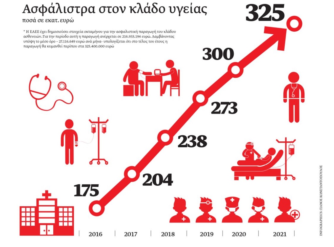 Αύξηση 71,5% σημείωσαν την τελευταία εξαετία 2016-2021 τα ασφάλιστρα υγείας σύμφωνα με τα στοιχεία της Ένωσης Ασφαλιστικών Εταιρειών Ελλάδας.