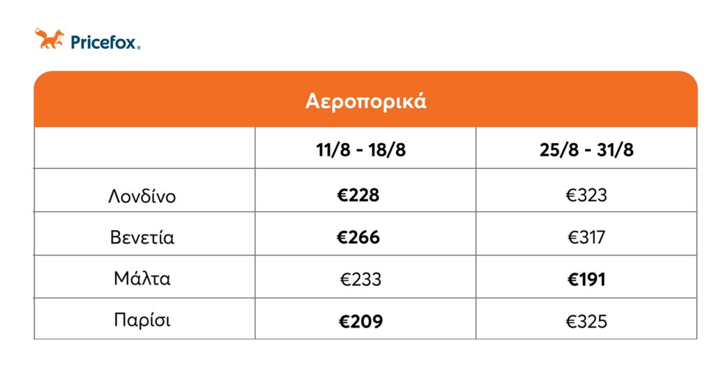 Τιμές αεροπορικών για το εξωτερικό σε σε 2 περιόδους του Αυγούστου
