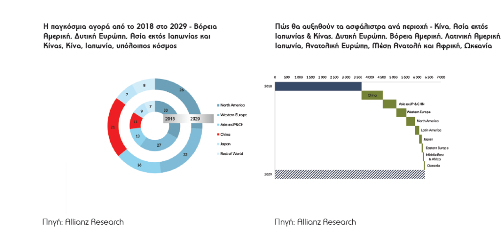 Αυτά αναφέρει η έρευνα της Allianz “Global Insurance Market at a crossroads” που δημοσιεύτηκε το 2019 και βλέπει σε ορίζοντα δεκαετίας την παγκόσμια ασφαλιστική αγορά. Σύμφωνα με τα στοιχεία της έρευνας, η μεγα λύτερη αύξηση σε ασφάλιστρα θα καταγραφεί στην Ασία και θα αγγίξει το +9,4% ετησίως για την επόμενη δεκαετία, με +9,8% στη ζωή και +8,5% στις γενικές ασφαλίσεις, λόγω της μεγάλης ανάπτυξης στην Κίνα.