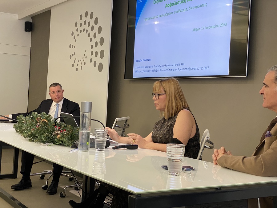 Διευκρίνησεις σχετικά με την ετήσια έκθεση προς την ΕΑΕΕ για την ασφαλιστική απάτη και το περιεχόμενό της παρουσίασε η κα Κατερίνα Καλογήρου, Διευθύντρια Διαχείρισης Λειτουργικών Κινδύνων Eurolife FFH, μέλος της Επιτροπής Πρόληψης & Αντιμετώπισης της Ασφαλιστικής Απάτης της ΕΑΕΕ. Η έκθεση είναι υποχρεωτική και προβλέπεται στο Πρωτόκολλο. Υποβάλλεται ετησίως έκθεση προόδου και ελλείψεων σε επίπεδο ανώτατης διοίκησης. (Παρουσίαση Κ. Καλογήρου).
