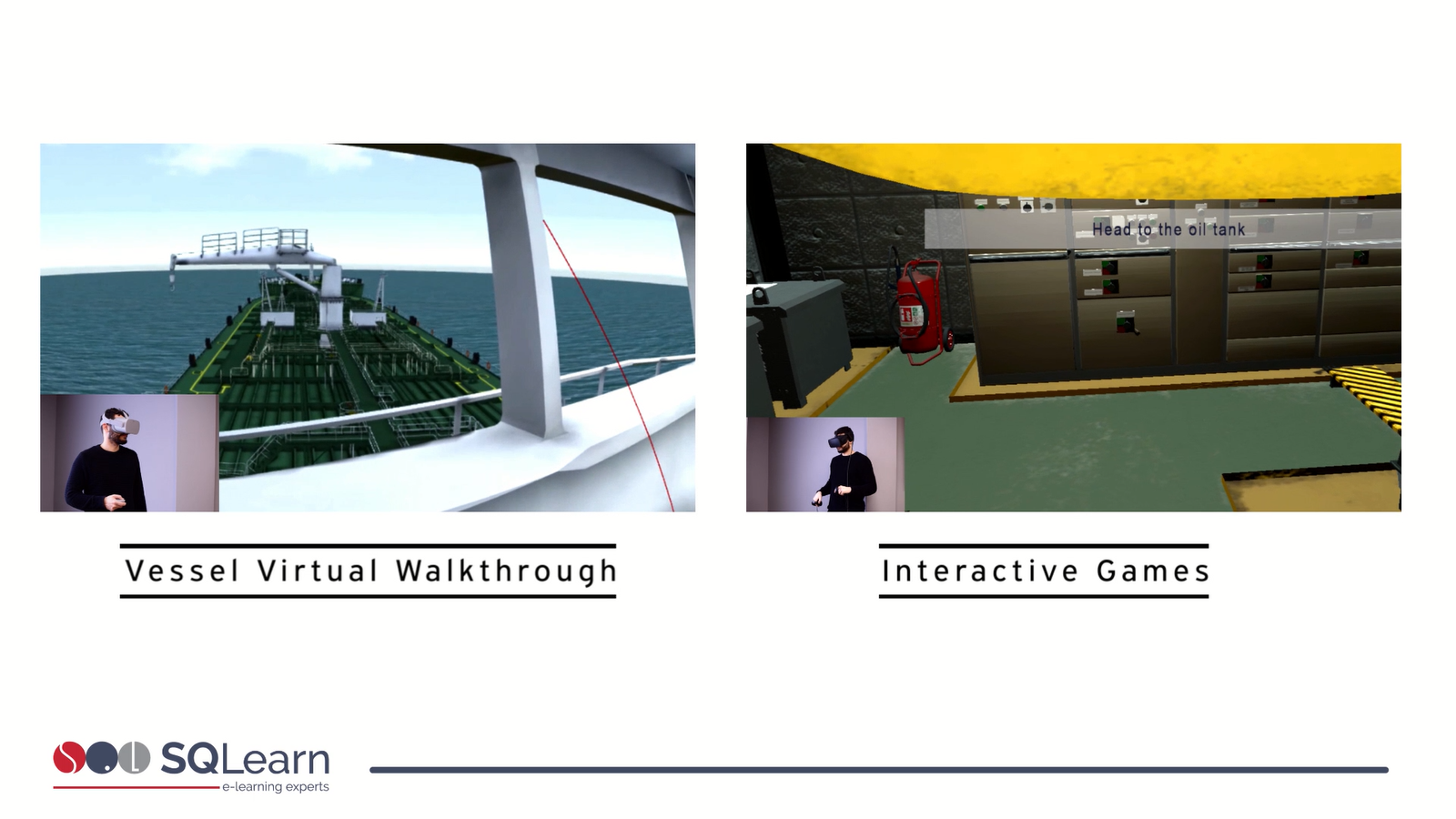 Η εκπαίδευση με τη χρήση της εικονικής πραγματικότητας μπορεί να είναι ιδιαίτερα αποτελεσματική. Οι ναυτικοί έχουν τη δυνατότητα, τόσο στη στεριά, όσο και εν πλω με τη χρήση μίας αυτόνομης συσκευής, να πετύχουν τους εκπαιδευτικούς τους στόχους μέσω των διαδραστικών εφαρμογών. Συγκεκριμένα, η SQLearn δημιούργησε μία διαδραστική περιήγηση στα βασικά τμήματα ενός δεξαμενόπλοιου, όπως είναι η γέφυρα, τα διάφορα μέρη του μηχανοστασίου, το κατάστρωμα και η δεξαμενή έρματος.
