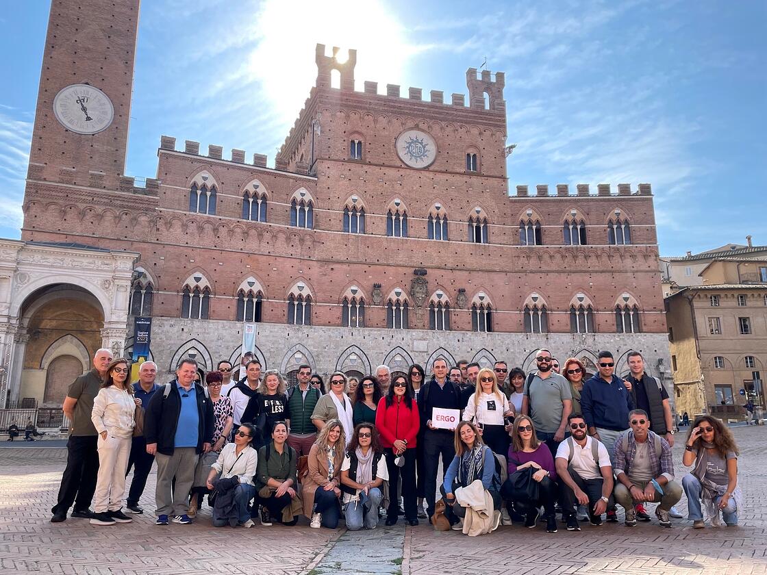 Οι Συνεργάτες της ERGO Ασφαλιστικής απόλαυσαν την ξενάγησή τους στη Σιένα και περιηγήθηκαν στα πιο σημαντικά αξιοθέατα της πόλης, τον Καθεδρικό Ναό, το Παλάτι Chigi Saraceni, την πιάτσα ντελ κάμπο και τον Άγιο Δομένικο, ενώ στη συνέχεια επισκέφτηκαν το Σαν Τζιμινιάνο, τη μεσαιωνική πόλη με αυθεντικά οχυρά – πύργους και Μνημείο Παγκόσμιας Κληρονομάς της UNESCO.