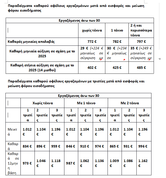 Από το 2019, η σωρευτική αύξηση αγγίζει τα 270 ευρώ μηνιαίως ή 3.780 ευρώ ετησίως, 4,2 έως 5,8 μισθοί παραπάνω, δηλαδή 41,54% συνολική αύξηση από το 2019.
