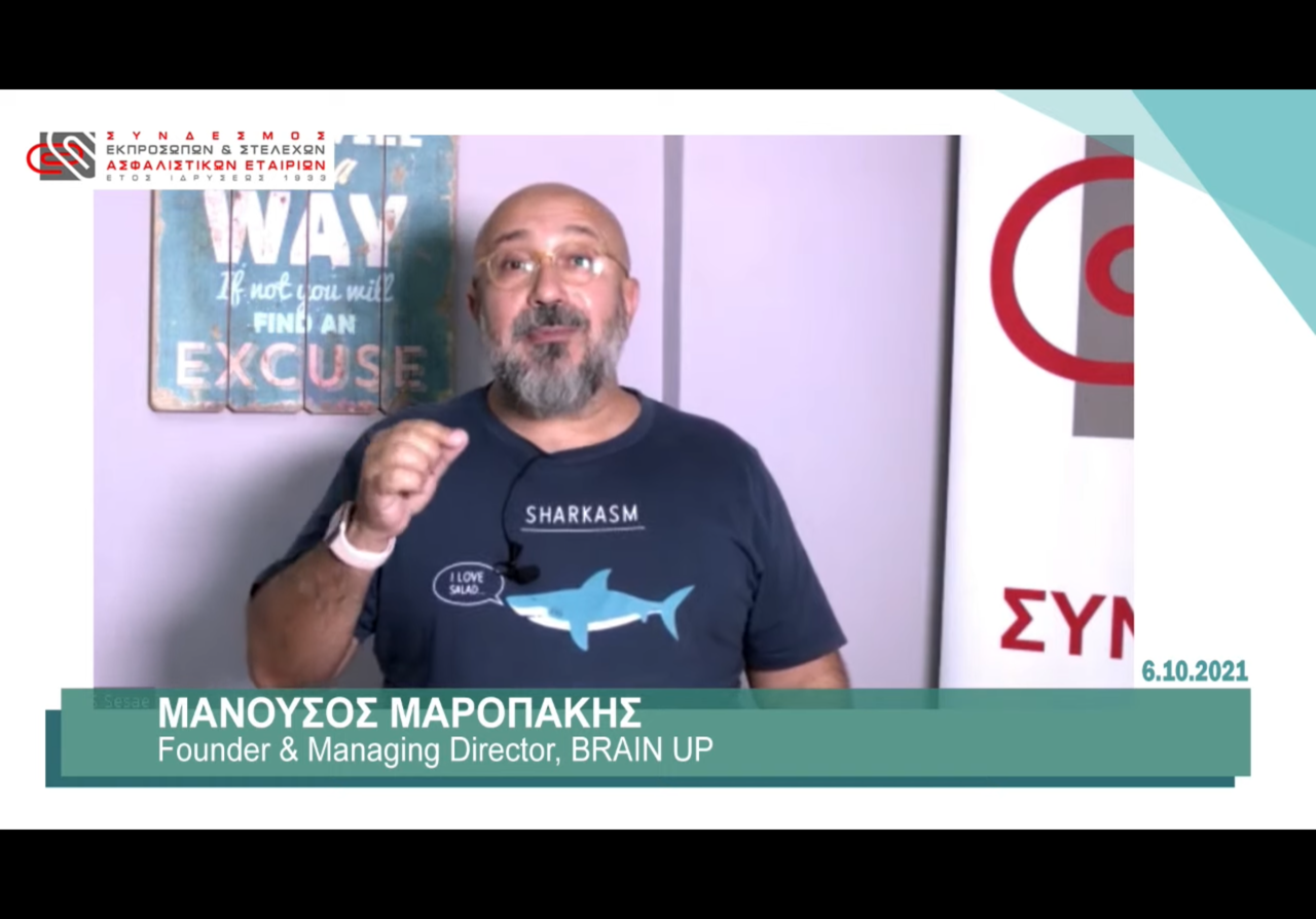 Πάνω από 100 στελέχη της ελληνικής ασφαλιστικής αγοράς, μέλη και φίλοι του Συνδέσμου, είχαν την ευκαιρία να παρακολουθήσουν την εξαιρετικά ενδιαφέρουσα παρουσίαση του κ. Μανούσου Μαροπάκη, Founder & Managing Director της BRAIN UP.