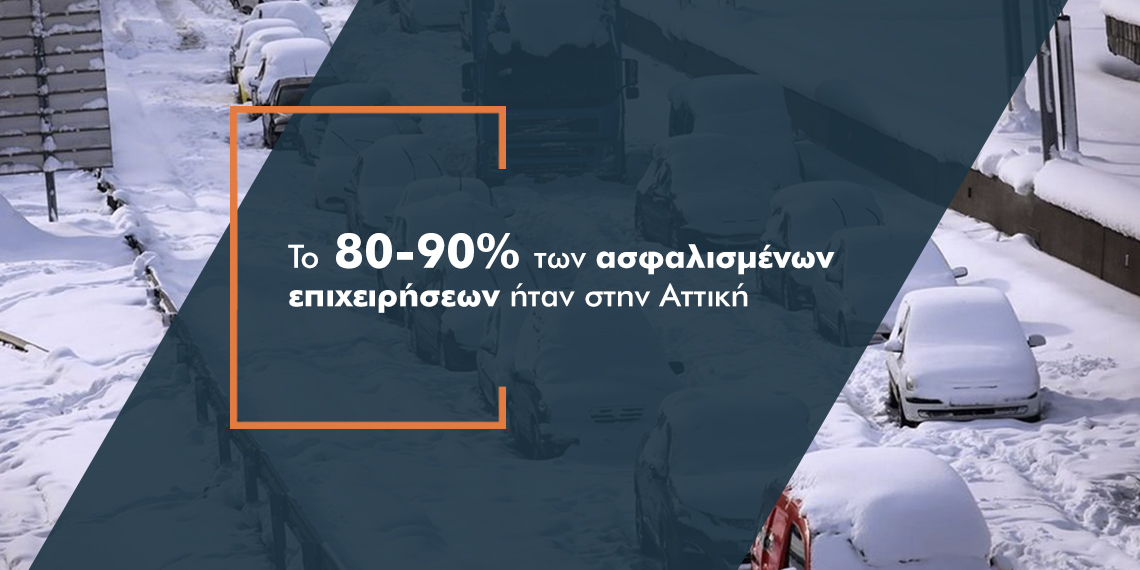 Παρά το γεγονός ότι η χιονοκαταιγίδα από τις 22 έως τις 25 Ιανουαρίου προκάλεσε ζημιές σε διάφορες περιοχές, ωστόσο λόγω της μειωμένης διείσδυσης της ασφαλιστικής αγοράς στην επαρχία το 80-90% των ασφαλισμένων επιχειρήσεων ήταν στην Αττική.