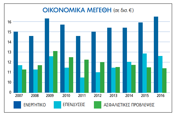 Επίσης παρά την ύφεση της εληνικής οικονομίας οι επενδύσεις των ασφαλιστικών επιχειρήσεων διατήρησαν και το 2016 το ίδιο ποσοστό συμμετοχής στο ΑΕΠ της χώρας όπως και το 2015.